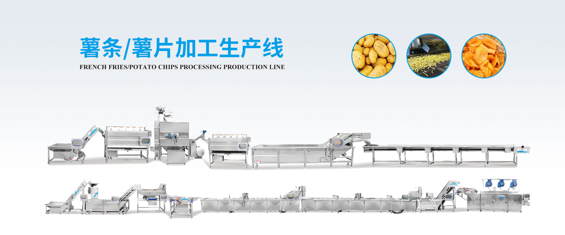 浸泡提升機(jī)一毛輥去皮機(jī)一斗式提升機(jī)蒸汽提升機(jī)一毛輥去皮機(jī)一氣泡清洗機(jī)一人工挑選一氣泡浸泡提升機(jī)—切條機(jī)一氣泡提升機(jī)一薄片切片機(jī)一震動布料機(jī)一漂燙一輸送提升一三層烘干一油炸一提升一速凍